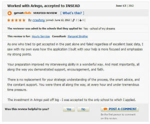 GMATclub review of ARINGO MBA admission consulting GMATclub review of ARINGO MBA admission consulting פברואר 7th, 2015| Share This Story, Choose Your Platform! FacebookXRedditLinkedInTumblrPinterestVkEmail About the Author: Aringo_WP_User