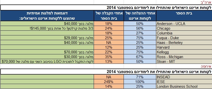 חיבורי הרשמה שפורסמו עד כה לתוכניות MBA